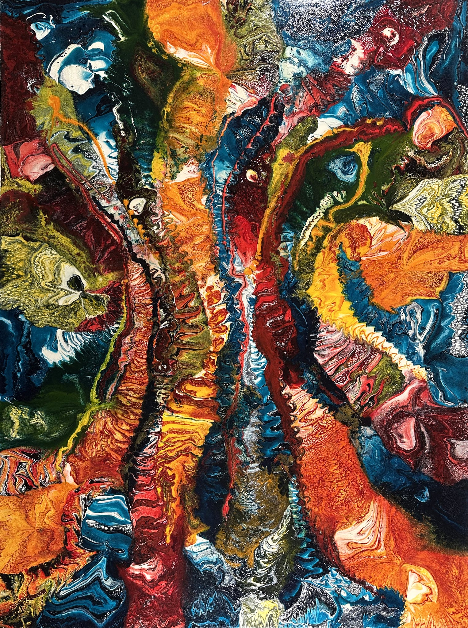 Abstract artwork with vibrant colors and textures