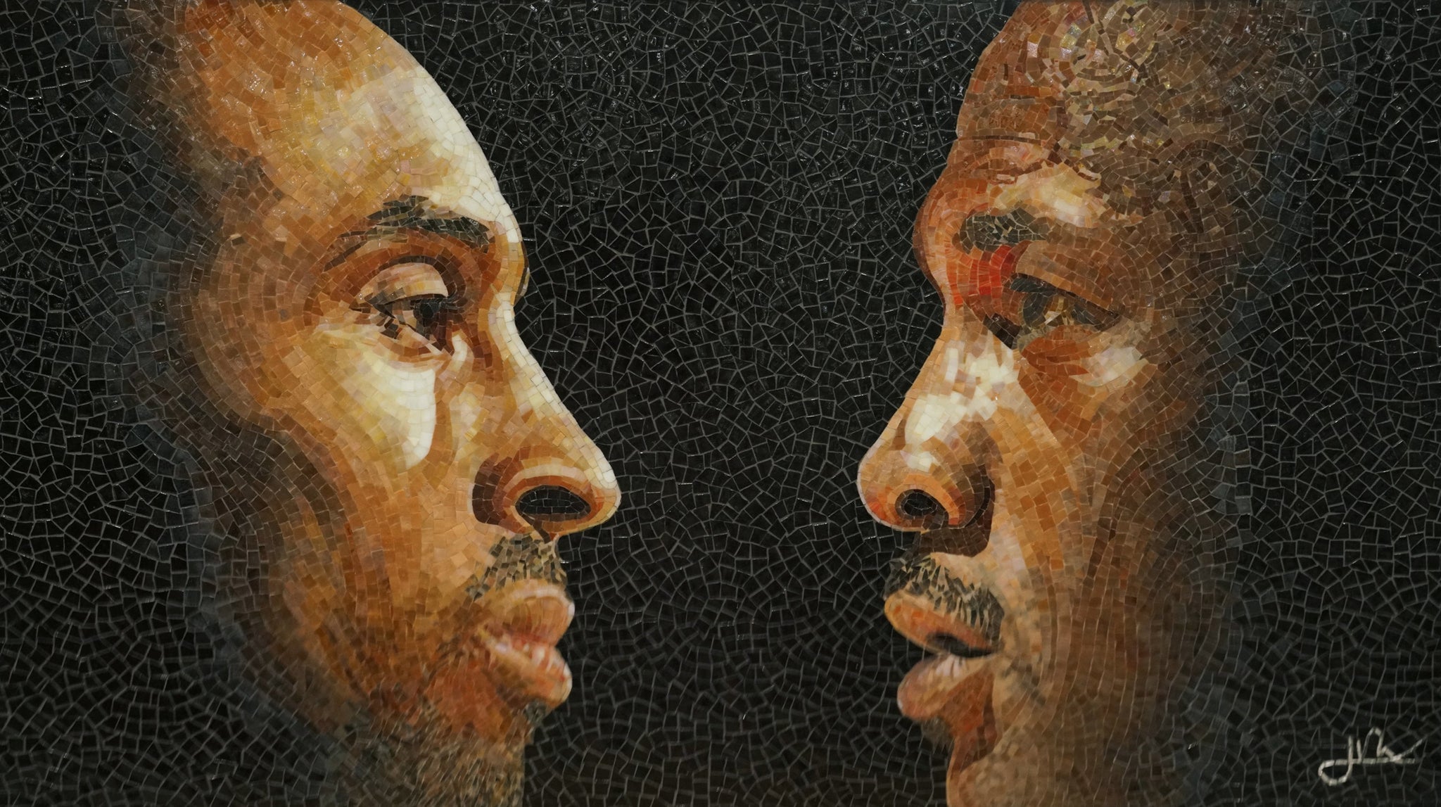 "Face Off" by Jay Nadeau, Glass Mosaic